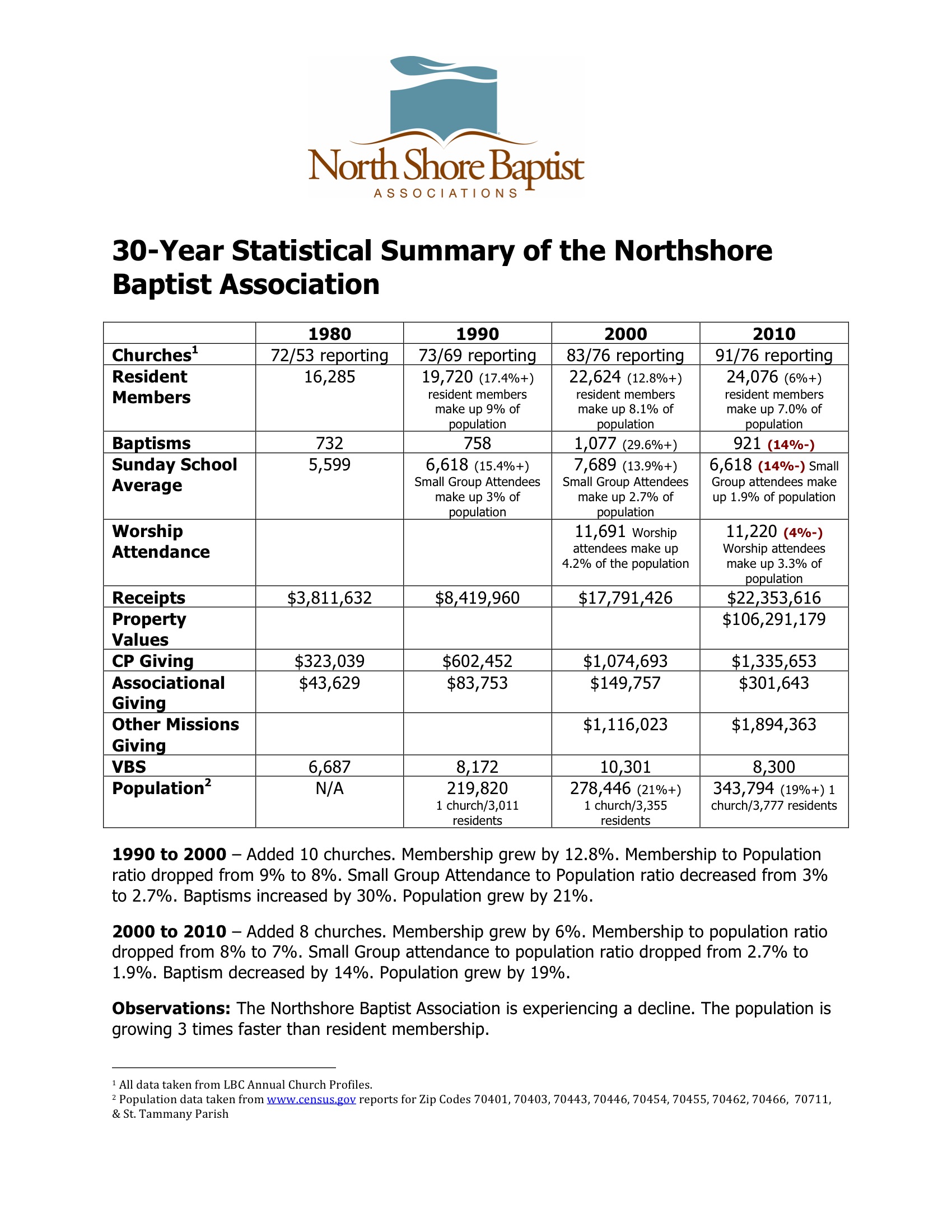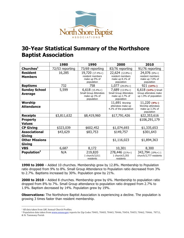 Northshore PROBE: 30 Year Stat Summary of the Northshore Baptist Association