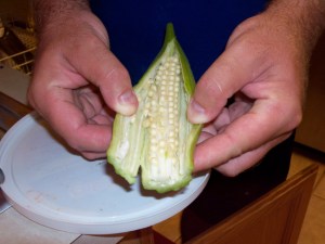 projects is keeping a small veggie garden in the backyard. Did well this year, but we’ve reached the point of looking toward next year. No need to buy seeds or plants again. All we had to do was cut one open. God has packaged them into the harvest. As Bob Logan said, “In every apple is an orchard.”