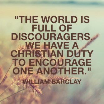 One of the highest of human duties is the duty of encouragement… It is easy to laugh at men’s ideals; it is easy to pour cold water on their enthusiasm; it is easy to discourage others. The world is full of discouragers. We have a Christian duty to encourage one another. Many a time a word of praise or thanks or appreciation or cheer has kept a man on his feet. Blessed is the man who speaks such a word.
