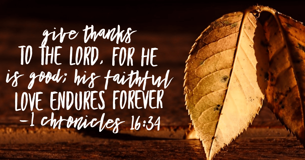 1 Chronicles 16:34 – “Give thanks to the Lord, for He is good, his faithful love endures forever.”